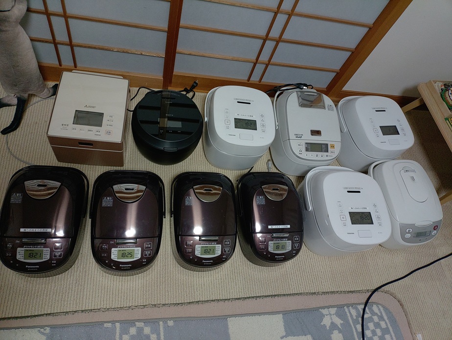 稲刈りから2か月以上毎日食味評価に使った炊飯器も全部で11台になりました。