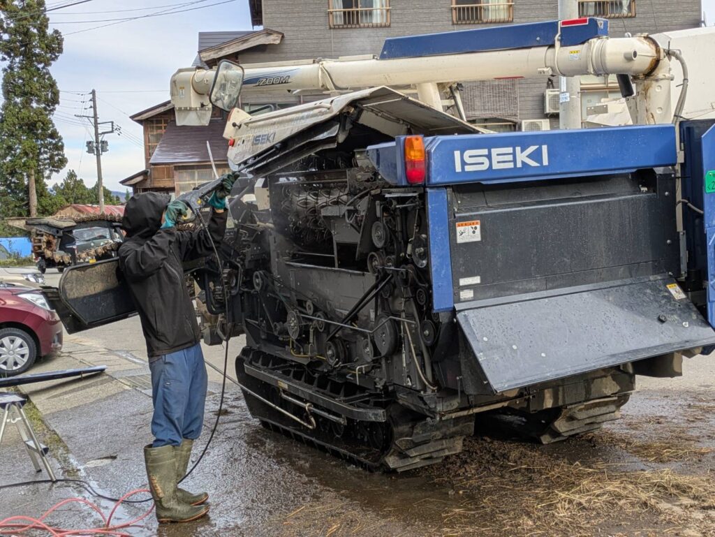 使い倒したコンバインのお掃除↑ 人も機械もよく頑張りました💪