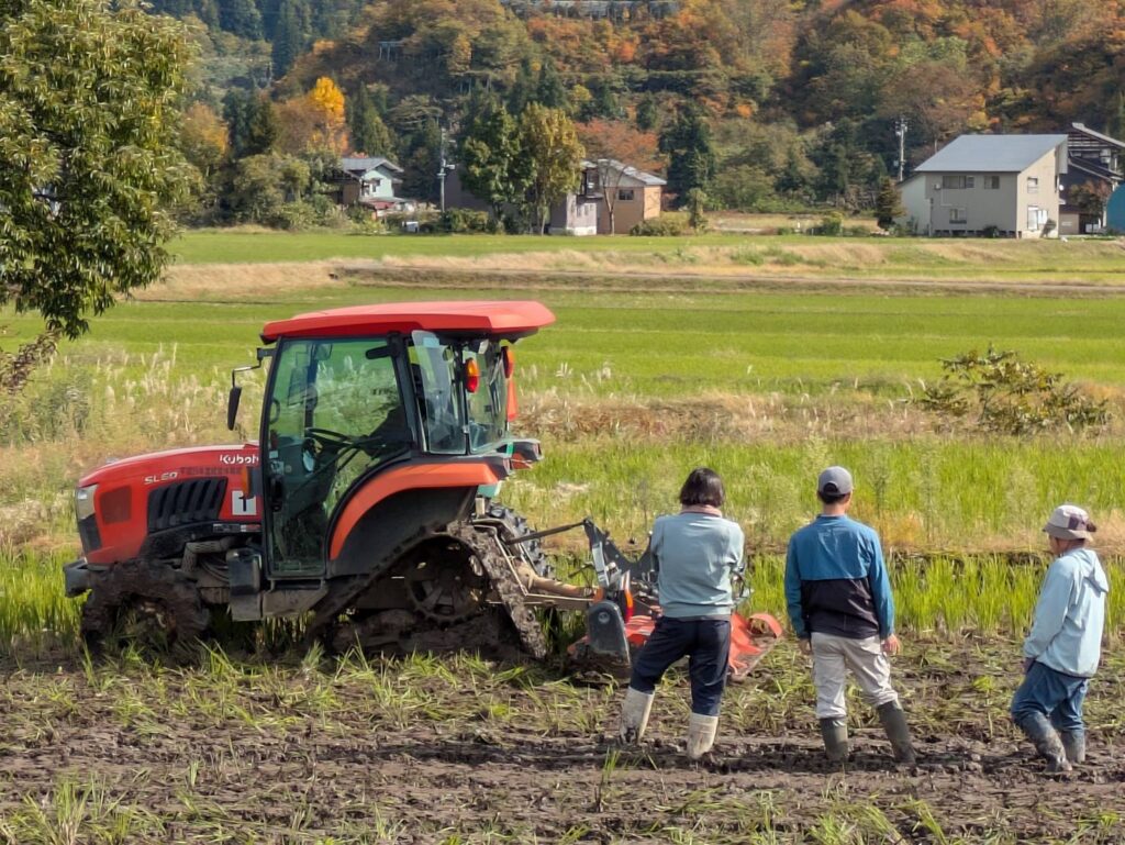 外では農機具を洗ったり、田んぼでは来年に向けて肥料散布や耕耘をしています。
