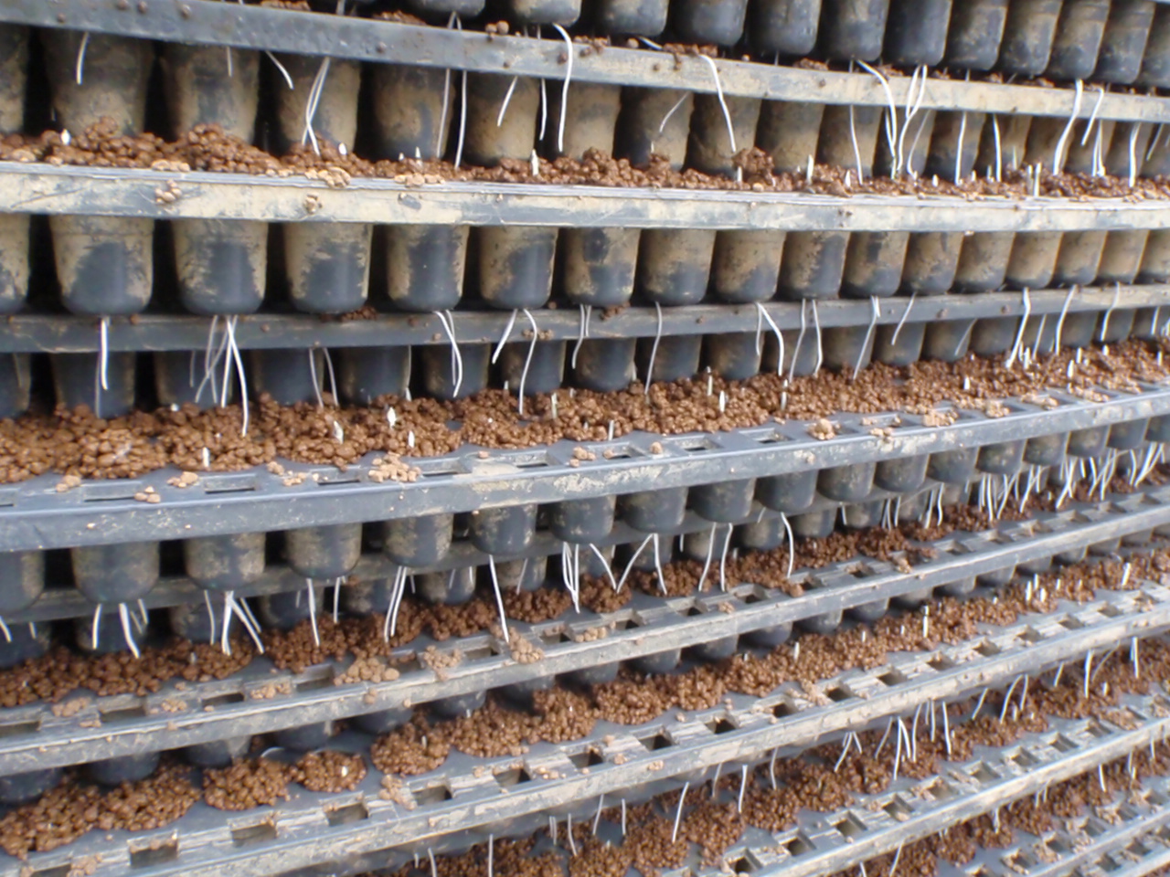 CAT:7 2012.5.4 ポット苗の芽がようやく出てきました。 最初は弱々しい感じですがあと2週間もすると、もさもさの緑じゅうたんみたいになります。 それまでの管理は雨が降っても槍が降ってもミサイルが降ってもやり遂げます(>_<) ワイルドだろ~。。