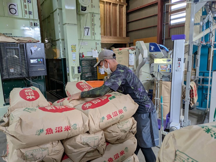 乾燥したら脱穀したり色選にかけたりして最後は30Kgの米袋に詰めます↓