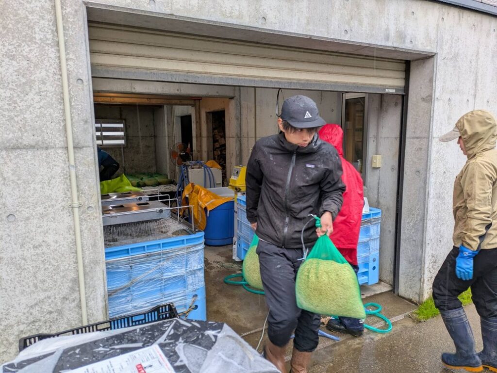 種籾を水に浸したあと、乾燥させて種まきをしやすくします。