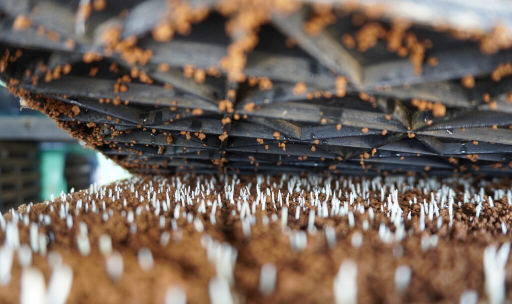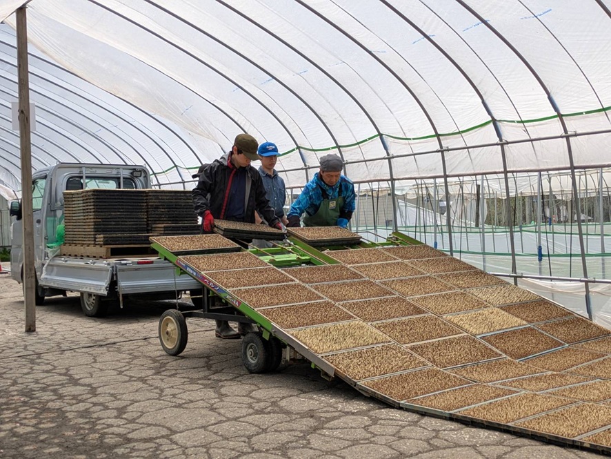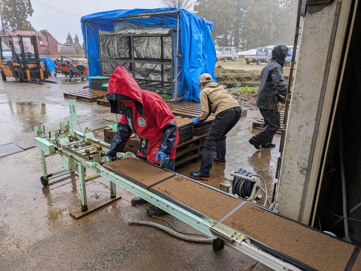 今年は種まき機を変えて1時間1000枚撒けるようにしました。